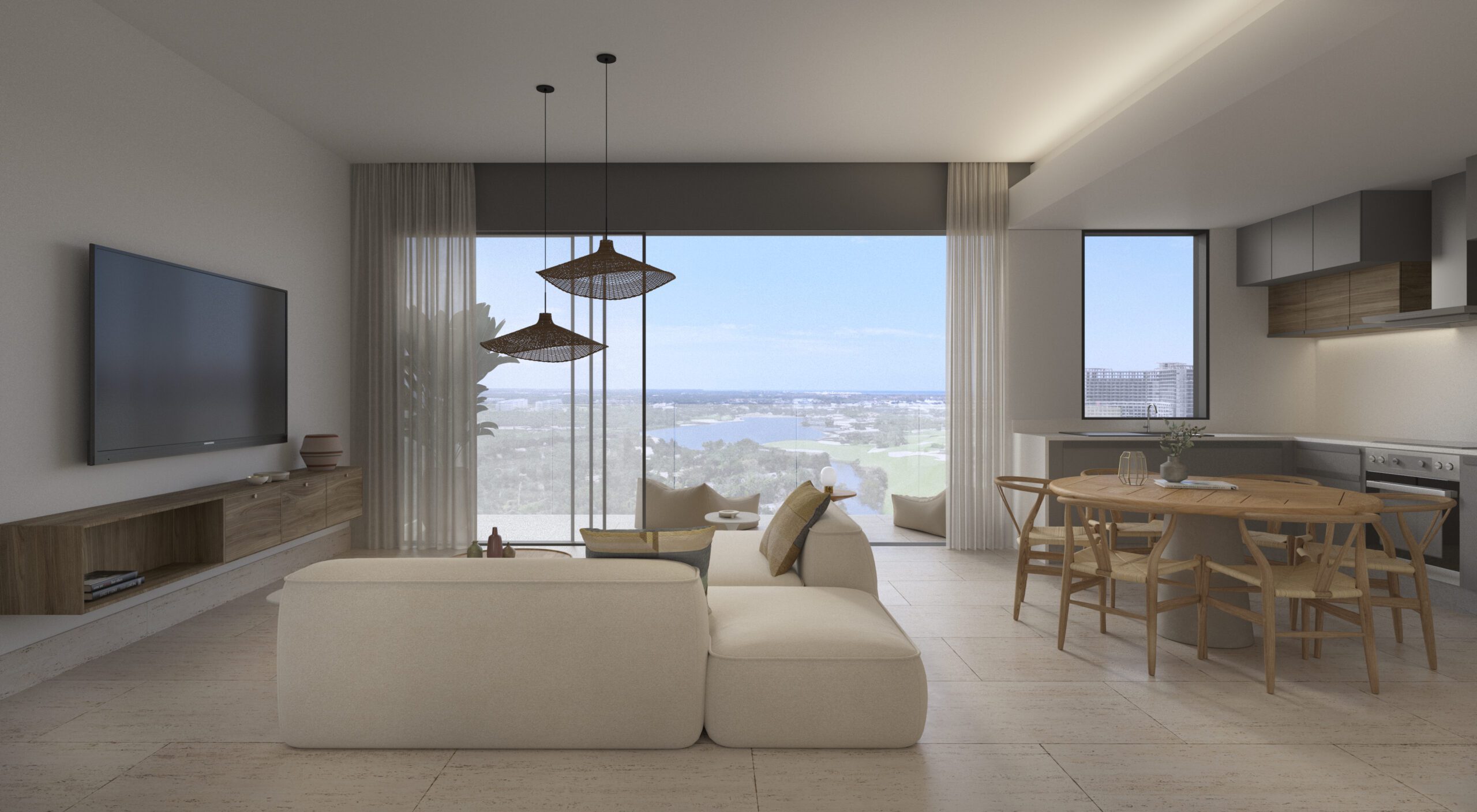 Cada hogar está diseñado para integrar el interior con el exterior. Las áreas sociales se extienden hacia amplias terrazas, las grandes ventanas permiten la entrada de luz natural y la vegetación se convierte en parte del día a día.